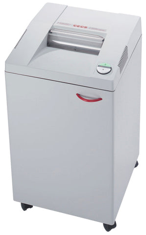 The Destroyit 2600 SMC high security shredder is a great mid-sized model with a lot of features and capabilities inside a relatively small cabinet. The cabinet is made from high quality wood and inside has a quiet yet powerful single phase motor. The sturdy "twin drive system" is securely enclosed in dust-proof housing. The cabinet is mounted on casters for accessibility and mobility. It has a sheet capacity of 11 and a roomy 10 1/4" feed opening. The Destroyit 2600 SMC has plenty of features that make it a top-notch model. The automatic start and stop of the feed is controlled by a photo sensor, making the machine safer and more electricity thrifty by not running when it isn't being used. It also has the "ESM" (Energy Saving Mode) which kicks in to conserve power after 1 hour of inactivity. The "Easy Switch" control features LED-lit icons representing operational status as well as rocker controls for easy off or reverse-feed. The power automatically cuts off during a paper jam, when the shred bag is full or when the cabinet door is opened. The 2600 SMC also features the "ECC" (Electronic Capacity Control) which helps prevent paper jams by indicating how well the shredder is handling the sheet capacity. The "SPS" (Safety Protection System) is a great feature involving a protective clear shield over the feed opening that is electronically controlled to cut the machine off should it be lifted, making shredding safer than ever. Dimensions (H x W x D): 35-1/2" x 19-1/2" x 18-1/2"Full Specs of the Destroyit 2600 SMC High Security